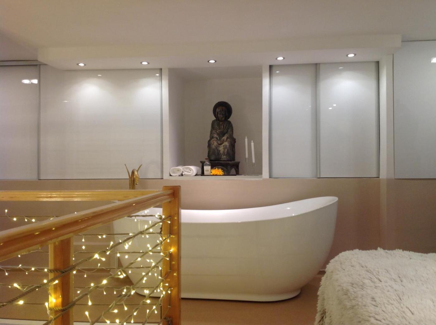 Studio Apartment with Private SPA for You. This apartments standout feature is the fireplace. Boasting a private entrance, this air-conditioned apartment includes 1 living room, 1 separate bedroom and 2 bathrooms with a bath and a shower. Guests will find a stovetop, a refrigerator, a dishwasher and kitchenware in the kitchen. The apartment also features a barbecue. Featuring a terrace with garden views, this apartment also offers a tea and coffee maker and a flat-screen TV with streaming services. The unit has 2 beds.