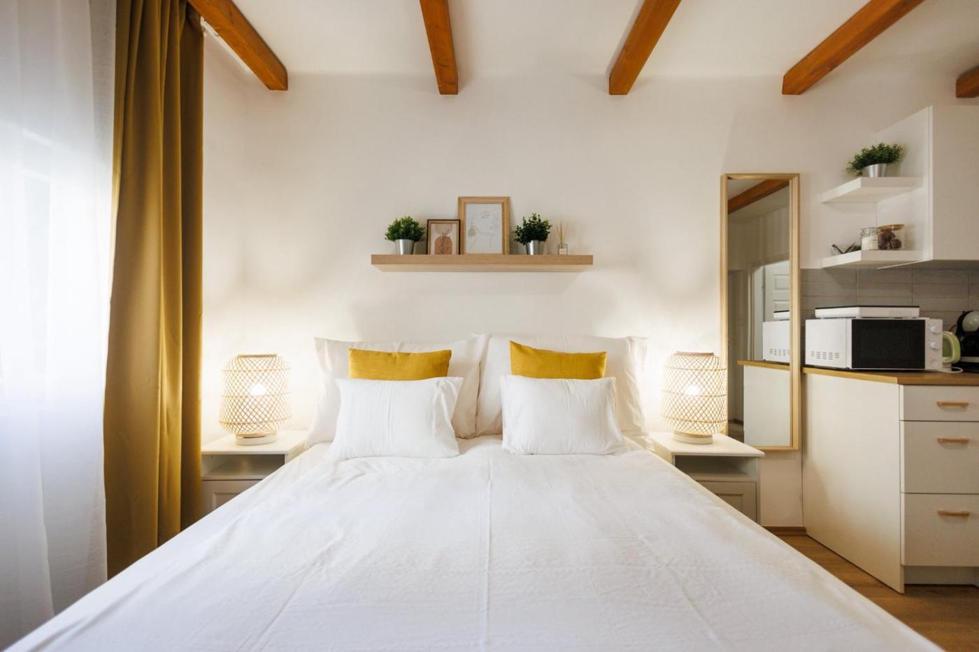 One-Bedroom Apartment. Featuring a private entrance, this air-conditioned apartment consists of a kitchen, 1 bedroom and 1 bathroom with a walk-in shower and a hairdryer. The apartments kitchen, which features a stovetop and a microwave, is available for cooking and storing food. Boasting a terrace with city views, this apartment also provides a tea and coffee maker and a flat-screen TV. The unit offers 1 bed.
