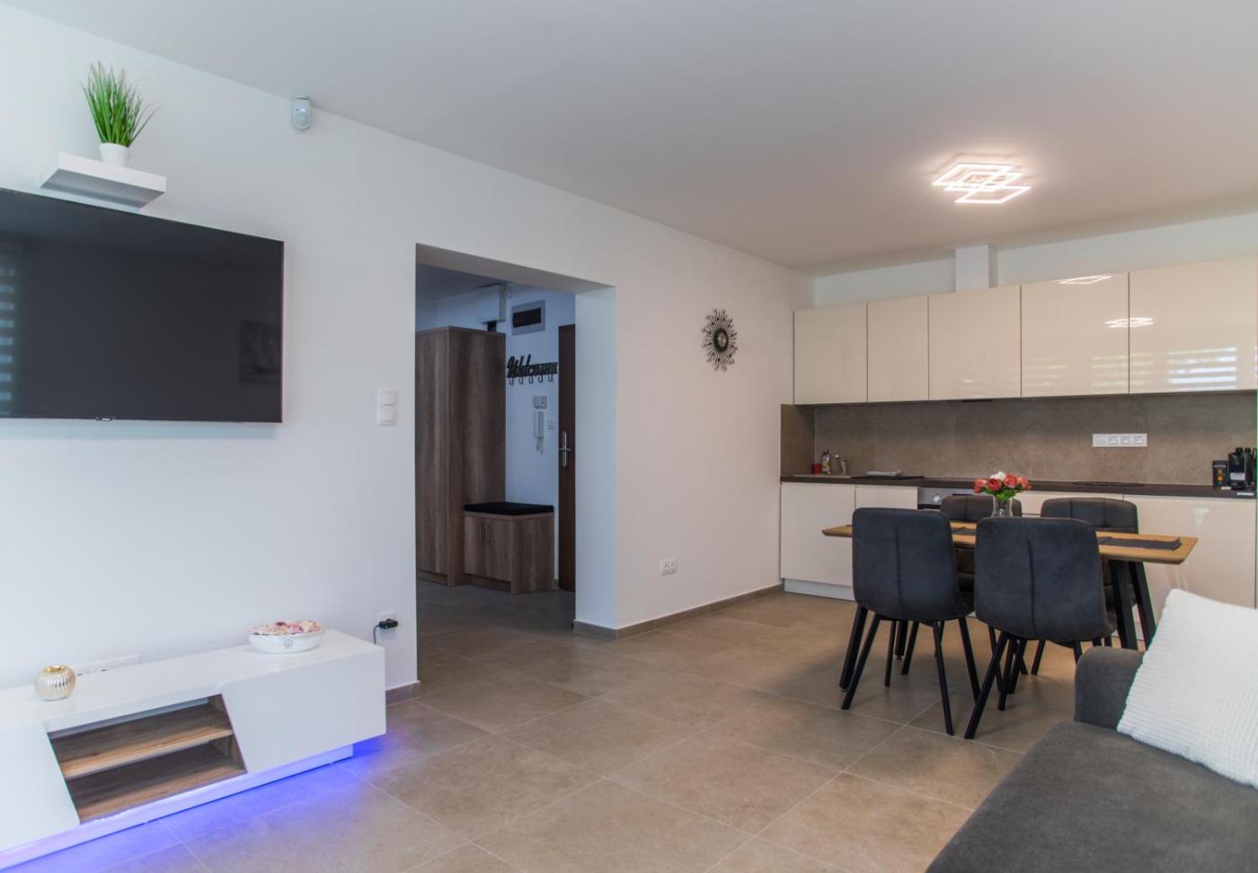 Deluxe Apartment. This air-conditioned apartment comes with 1 living room, 2 separate bedrooms and 1 bathroom with a shower. The fully equipped kitchen has a stovetop, a refrigerator, a dishwasher and kitchenware. Boasting a balcony with lake views, this apartment also features a washing machine and a flat-screen TV with cable channels. The unit has 4 beds. ;