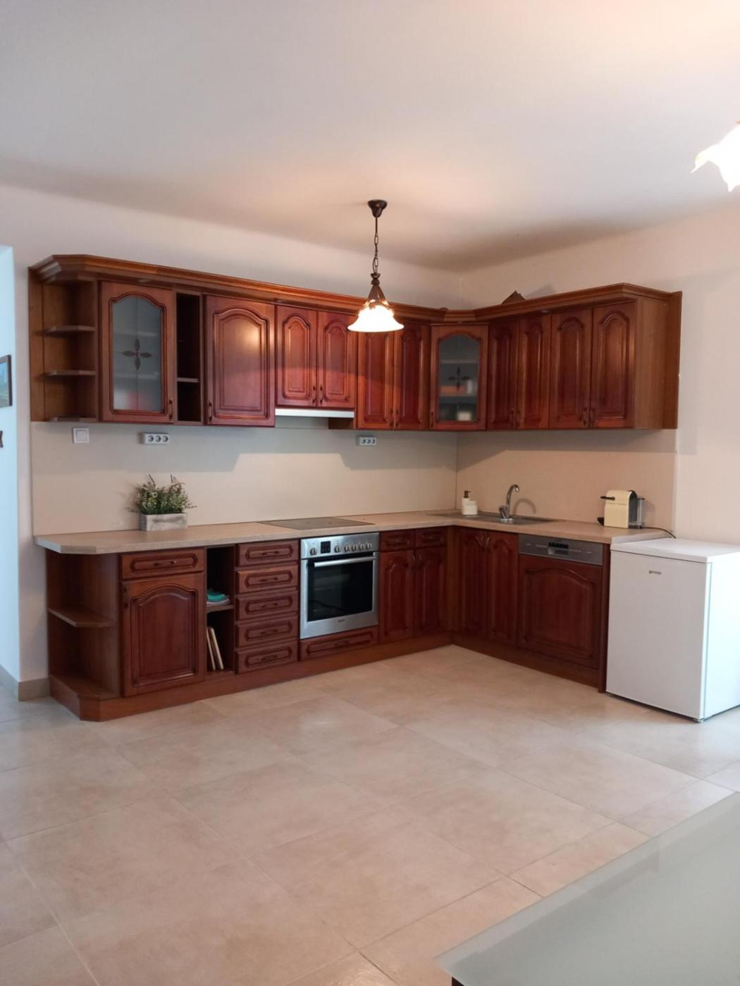 Four-Room Apartment. Guests will find a stovetop, a refrigerator, a dishwasher and kitchenware in the fully equipped kitchen. The apartment also provides guests with a barbecue. The spacious apartment provides air conditioning, a private entrance, a terrace with garden views as well as a shared bathroom featuring a walk-in shower. The unit offers 9 beds.
